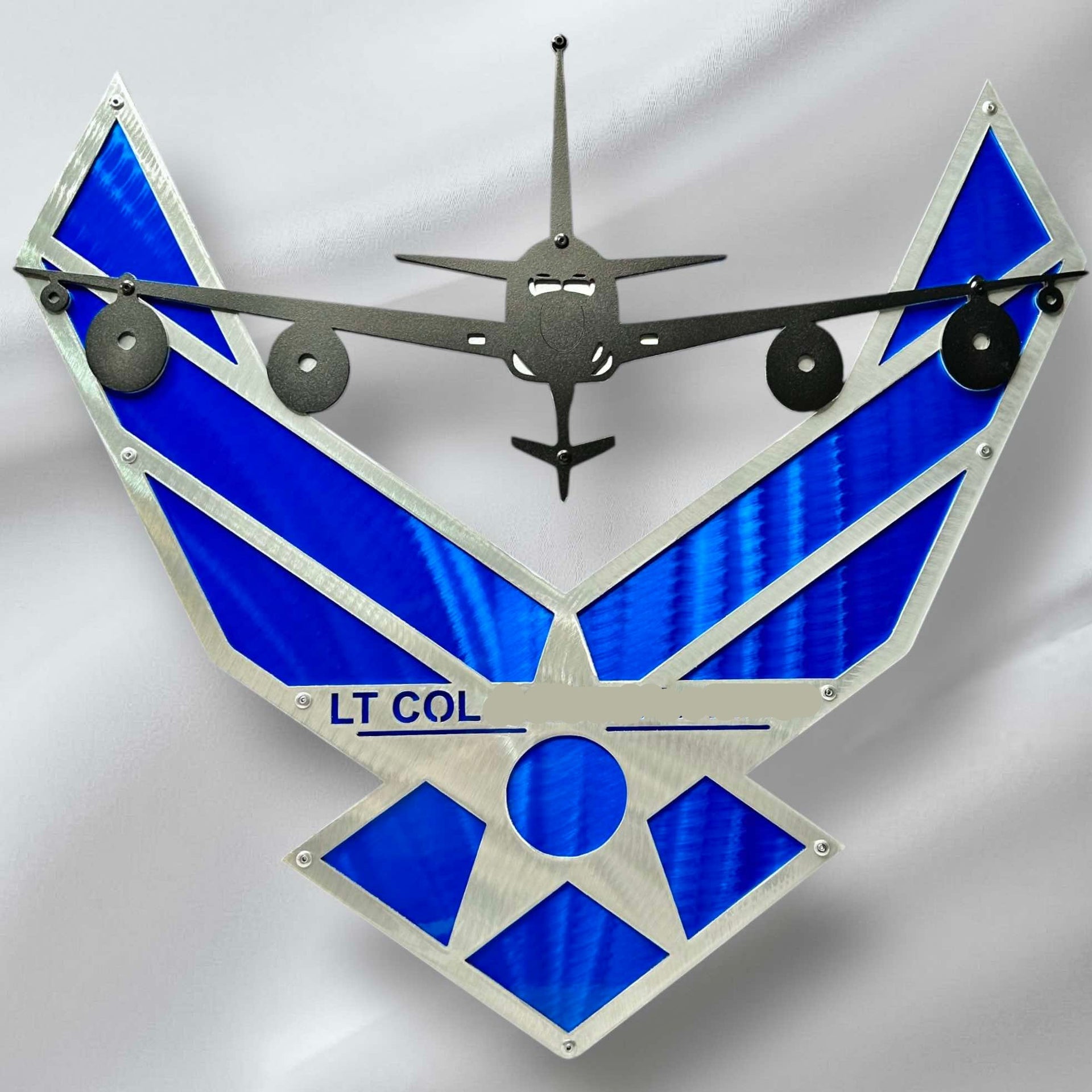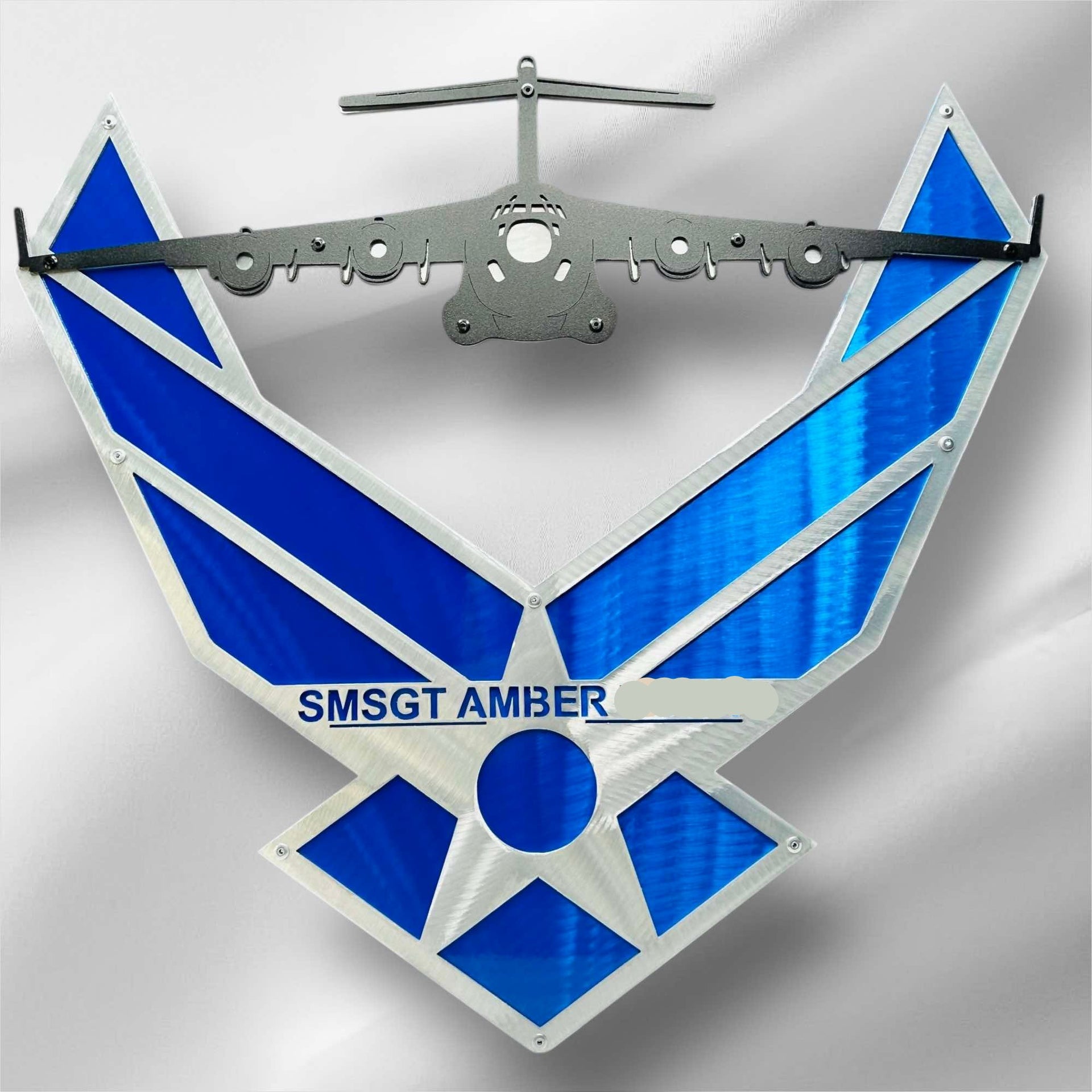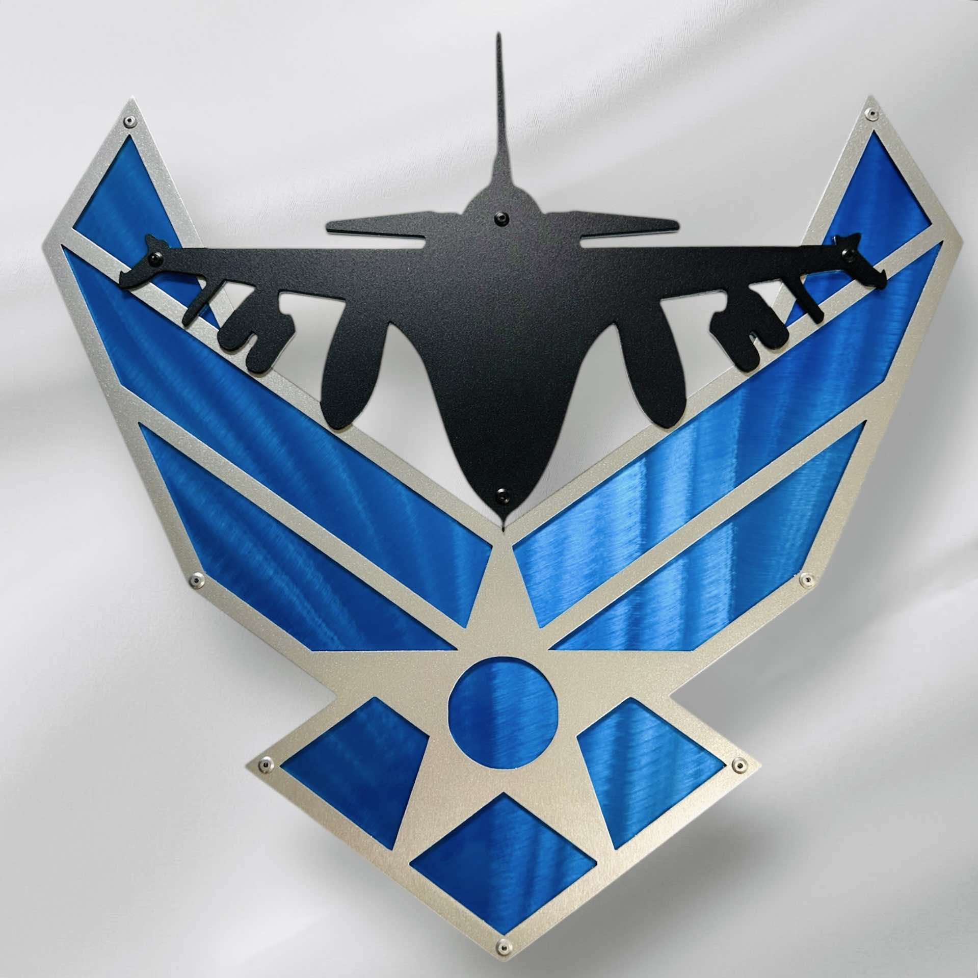 Showcase your pride in the United States Air Force with this stunning custom metal art piece. Inspired by the USAF logo, this artwork integrates the iconic Air Force symbol with an aircraft silhouette, capturing the spirit and excellence of aviation. Ideal for both active duty, veterans, and aviation lovers, this metal design combines durable construction with intricate laser-cut details, resulting in a bold and polished look. Perfect for home, office, or as a gift, this piece is a great way to honor the Air Force legacy and those who serve.
