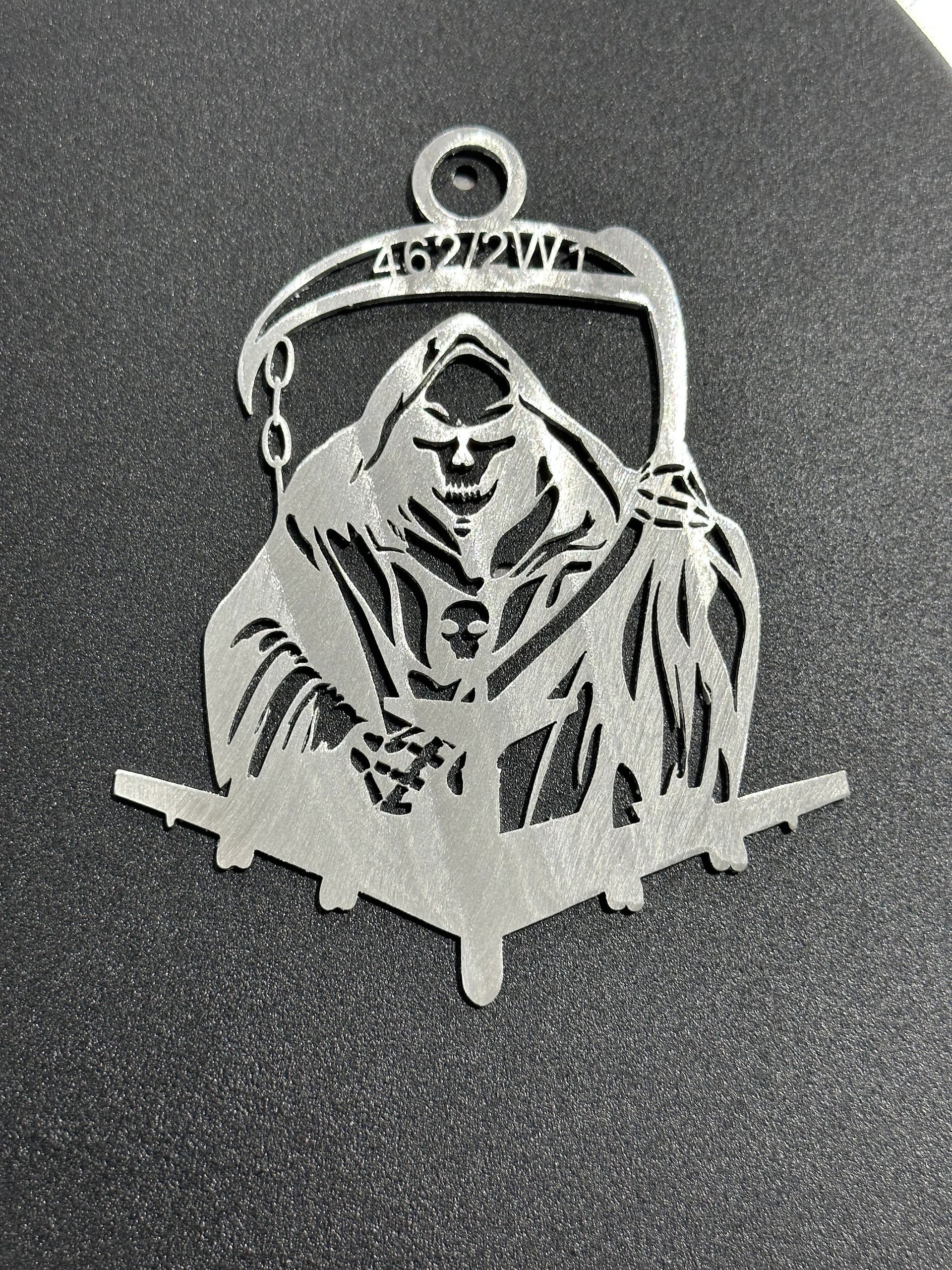 Our B-52 Weapons Reaper Medallion is a compact yet powerful tribute to the legendary bomber and its arsenal. Perfect for smaller spaces or as a unique gift for aviation enthusiasts and service members, this medallion is crafted from 16-gauge steel, meticulously hand-ground, hand-blued, and powder-coated for a durable, high-quality finish. Available in multiple face styles, this piece captures the fierce spirit of the B-52 and its formidable weapons legacy.