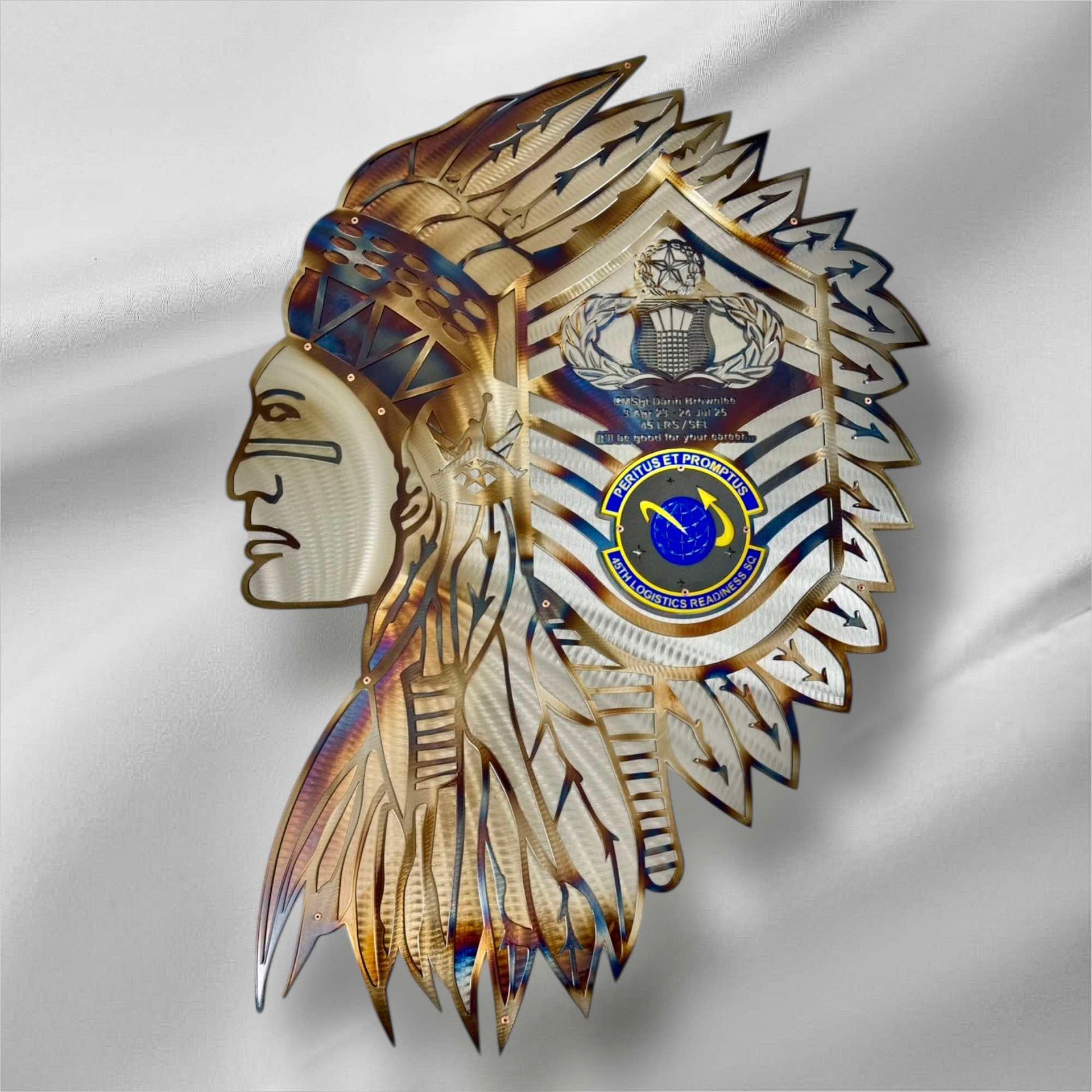 Celebrate the legacy and distinction of the USAF Chief Master Sergeant rank with our 36" Headdress, crafted from premium 16-gauge steel. This bold wall art is hand-ground, hand-blued, and finished with a resilient powder coat,...